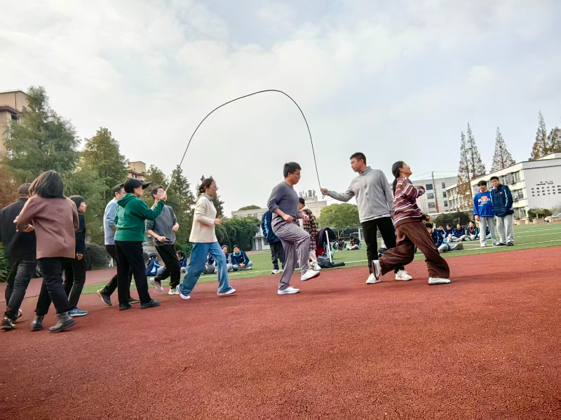 为在比赛中展现团队水平,早在十一月中旬,校工会便组织参赛教师利用课余时间展开训练。中午时间以及放学后,操场上总能见到老师们练习的身影:跳长绳的队伍反复磨合进出节奏,跳竹竿的团队则一遍遍练习着“开合”的默契。负责摇绳的沈老师笑着说:“平时上课各忙各的,现在为了同一个目标一起练,感觉大家心更齐了。”