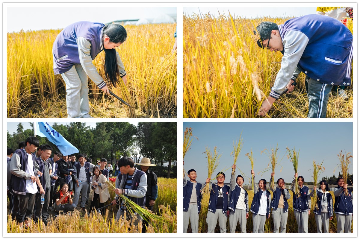 12点,五辆巴士准时发车,前往青浦现代农业园区。到达农业园区,全体同学被分为了三个生产大队,在导游的带领下,他们依次进入田间课堂的知识讲座、体验碾米和收割稻谷的实践活动。